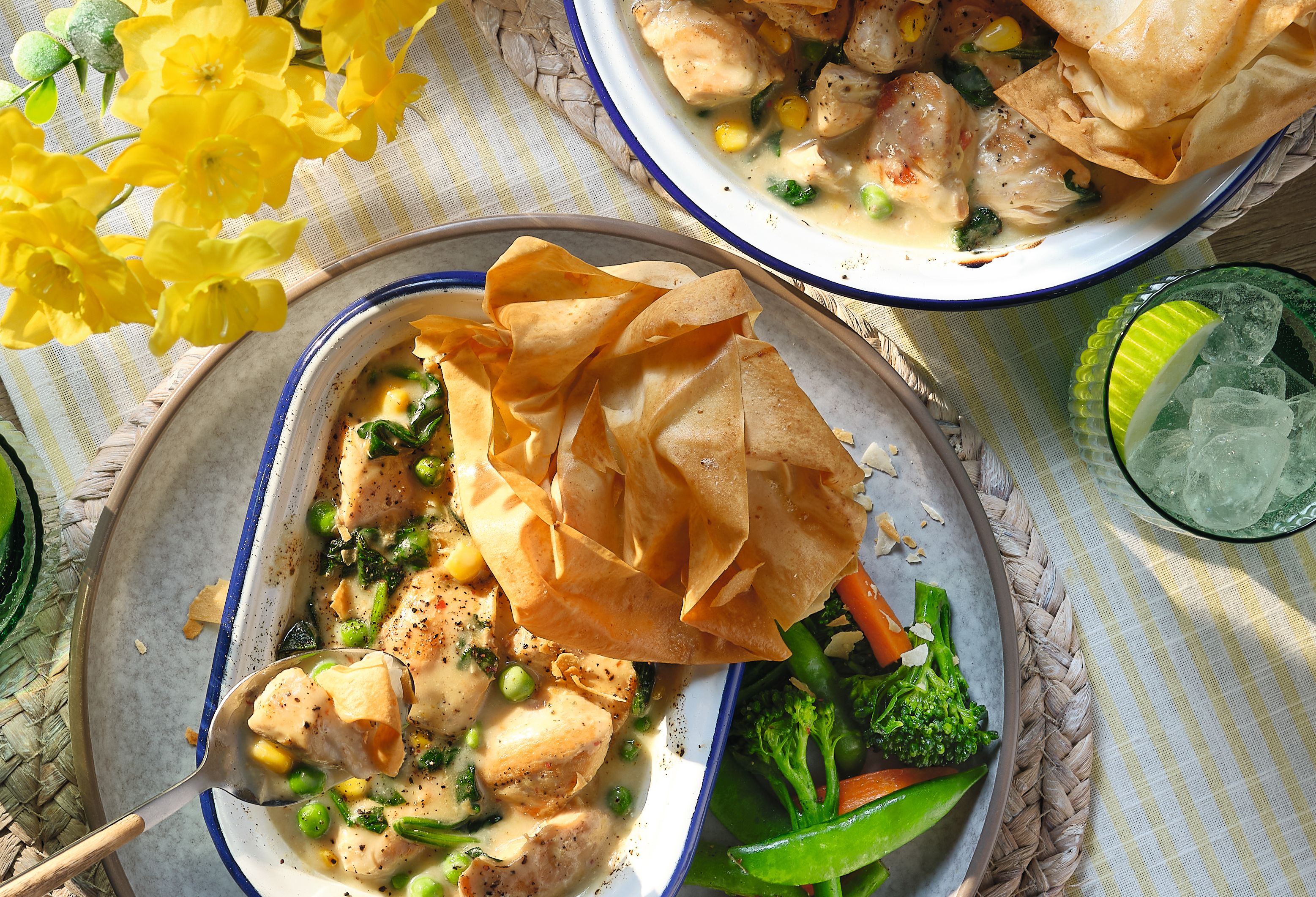 If you're craving more comforting, you'll love my Chicken, Sweetcorn and Spinach Filo Pie. Mix up all the ingredients for the creamy pie filling with pastry, then crumple up the filo sheets for the top.
