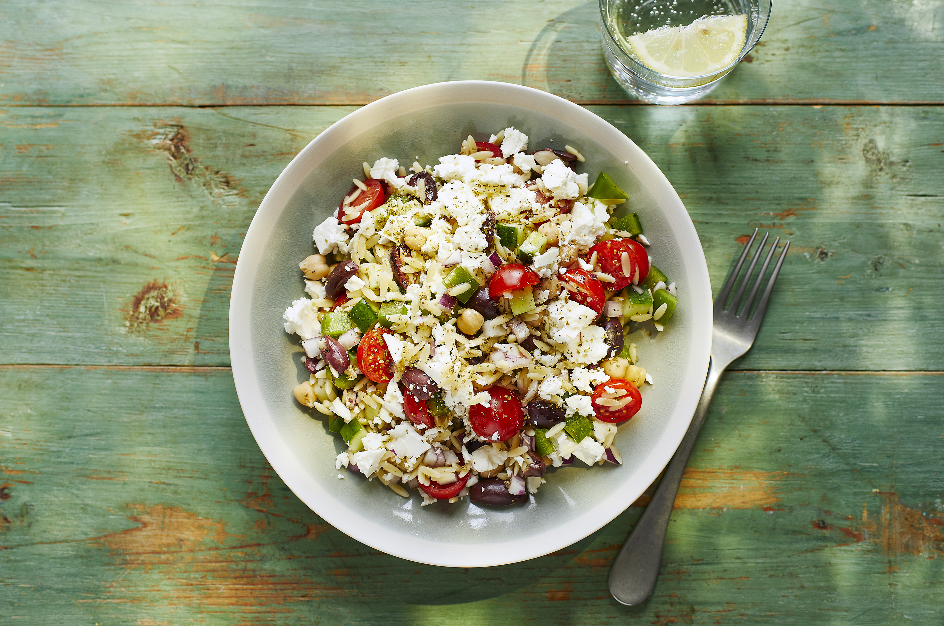 Bring a large pan of salted water to the boil, add the orzo and cook according to the packet instructions. Drain and rinse under cold water until completely cooled.