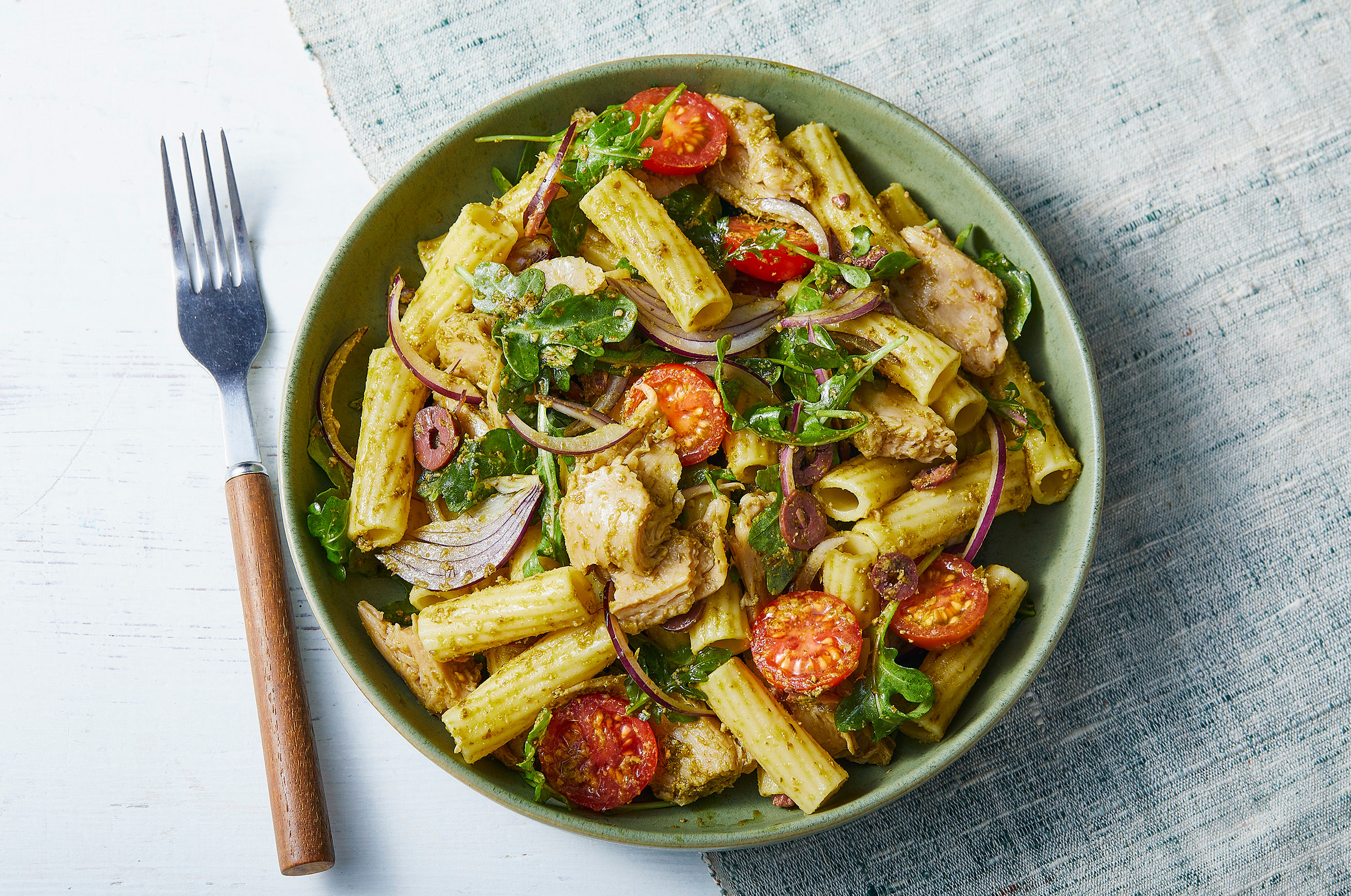 Leave the pasta to cool for a few minutes then toss with the remaining ingredients, using a splash of the cooking water to help everything come together. Season to taste and serve.