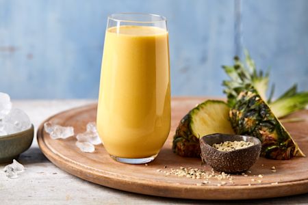 Mega simple; place all the ingredients into a blender and blend until smooth.