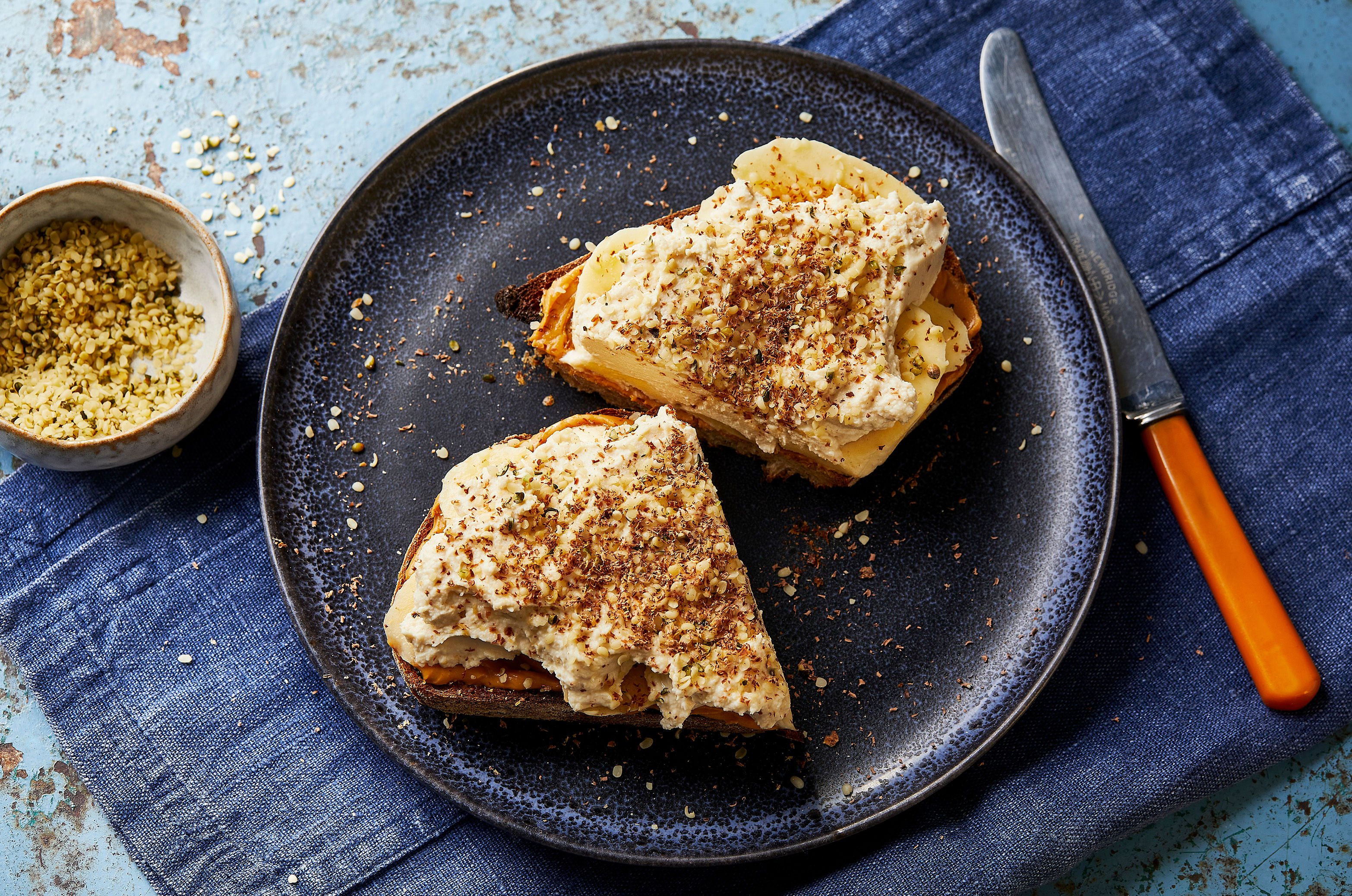 Load the yoghurt onto the toast. Sprinkle over the seeds and chocolate to serve.