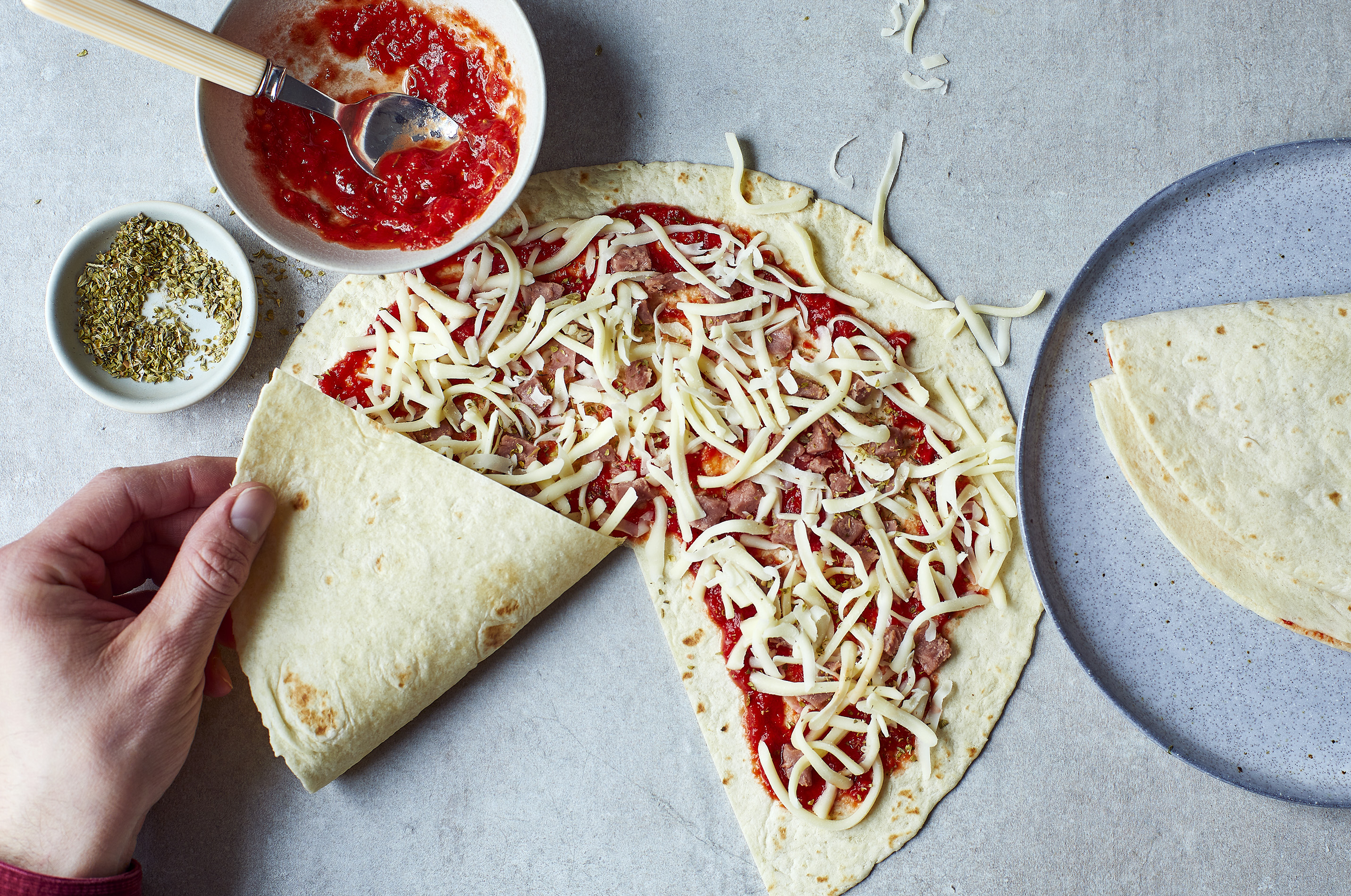 Quick Pizza Wraps with Garlic Dip